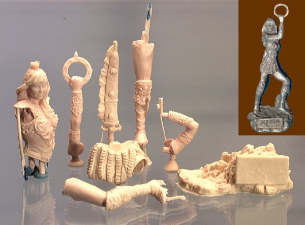 "Xena Cast Urethane Tooling Master Straight out of the molds and still have the sprues attached Pictured along with the finished Pewter figure"
