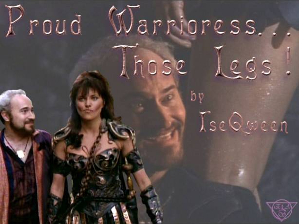 Yeah, I laughed too at first. I thought Xenaís leathers would swallow Gabrielle up, that sheíd wilt under the weight of Xenaís armor and sword. How would making her hair dark fool anybody, when her battle cry sounded like a pig squealing? But Xena said Gabrielle could do it ñ pretend to be the Warrior Princess. And she did. Rode into Talmadeusí camp, decoyed the soldiers back for our ambush. Xenaís arms still worked, so she helped. Afterwards, she got so weak we had to carry her on a litter. It was up to us to convince Talmadeus she was okay.