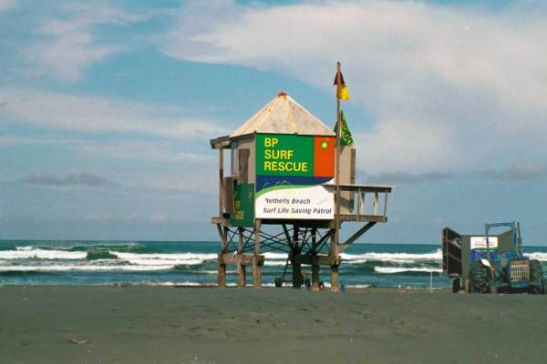 BETHELL'S BEACH The life guard station on the beach. They must have spent a lot of time CGI ing this out of the shots Photographer: Warren Serkin